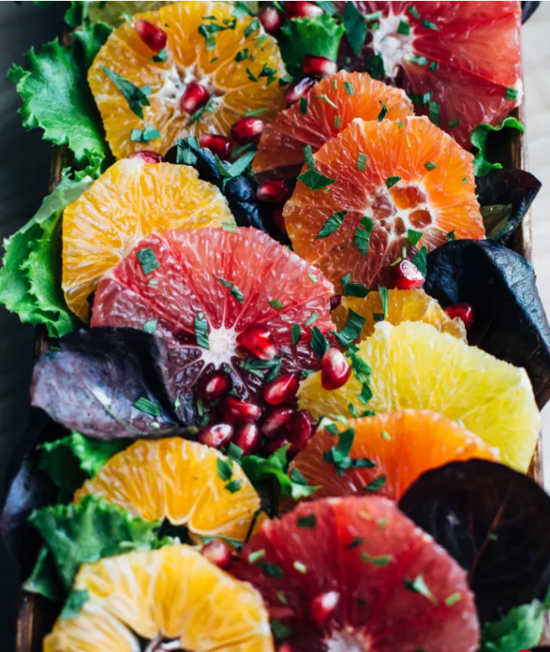This salad is deceptively simple. A mix of ruby red grapefruit and Cara Cara and mandarin oranges is the centerpiece, but the complex flavors come from tossing the fruit with fresh tarragon, parsley, and spring mix dressed in an irresistibly smoky tahini dressing. Citrus and herbs: the remedy for winter boredom.
